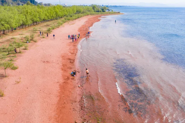 抚仙湖烟波浩淼,清莹透彻,水质极佳,空气清新。湖边榕树沙滩玩耍,散步。