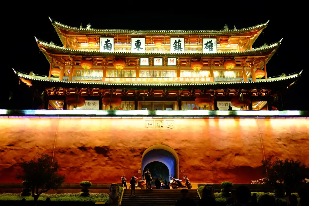 【朝阳楼外景】朝阳楼为古临安府城东城楼,以"东迎朝晖"而得名,是云南省保存较好、建筑宏伟的古城城楼。建于明洪武二十二年(1389年)。高24.45米,占地414平方米。