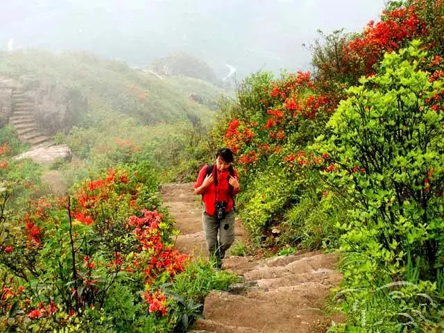 金子山原生态风景度假区是还是省内鲜有的高山杜鹃花(当地人称之为映山红)观赏地,高山杜鹃面积有上千亩,花色有七八种之多。每年3月到5月是杜鹃盛放的季节,整座山都给映山红染红了。