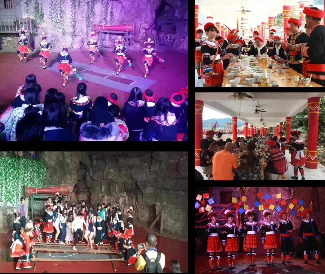 全程正餐A A 自理(约35左右每人每餐,第一天午餐可自带干粮、第二天午餐金子山有麻辣烫、各种粉面,10块左右每碗,也有餐厅),瑶族篝火晚会+长桌宴60元/人(门市80,自愿自理),