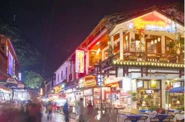 18:30自行前往 西街: "不逛洋人街,等于没到阳朔来"。夜里,华灯初上,眩目的霓虹灯惊醒了中国洋人街—【阳朔西街】,在这里,石板古道与清代砖瓦房遥相辉映,再搭配上现代化的特色小店,浪漫风情尽显,这样的古道适合约上三五知己畅聊,也可是和另一半在异国的西街感受浪漫,也可是一人漫步于西街开启一段异国艳遇,在西街每个人都可以拥有一段独一无二的故事。