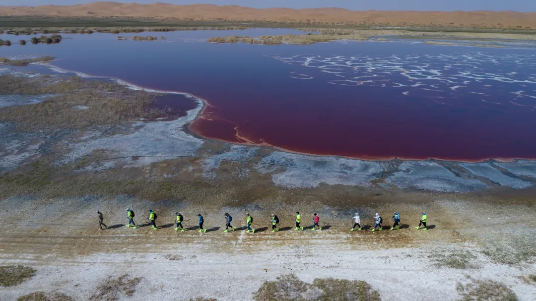 今天是景色最美的一天,高耸的沙丘,蔚蓝的湖泊,曼妙的沙漠曲线都在你的脚下,全程大约27公里,晚上18:00之前可抵达太阳湖营地。