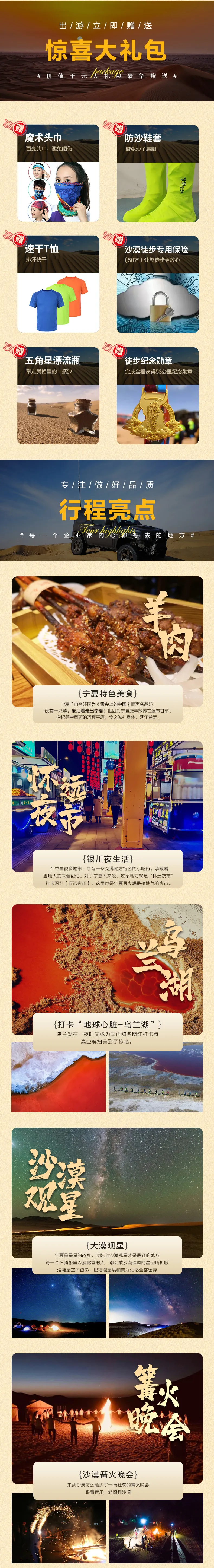 02 队员在自由活动期间,如果没有购买需求,不要和当地人讨价还价,也不要过多的驻足观看。如果队员自愿购物,请自行甄别产品质量。客人在沙漠徒步过程中以及在银川市区的购买行为属于个人行为,和此次徒步活动无关,购买过程中任何纠纷与组织方无关。