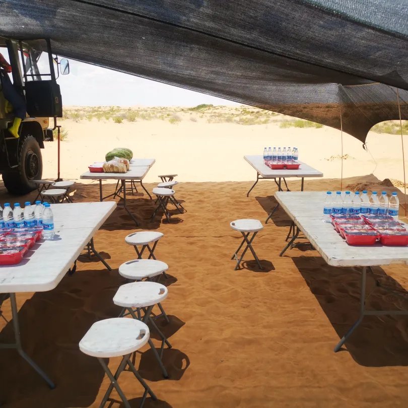 根据队员体力的不同,下午15:00-18:00陆续抵达今日营地---太阳湖营地,今日晚餐为丰盛的沙漠炖羊肉+炒菜桌餐,大家可以敞开享用上品的羊肉。