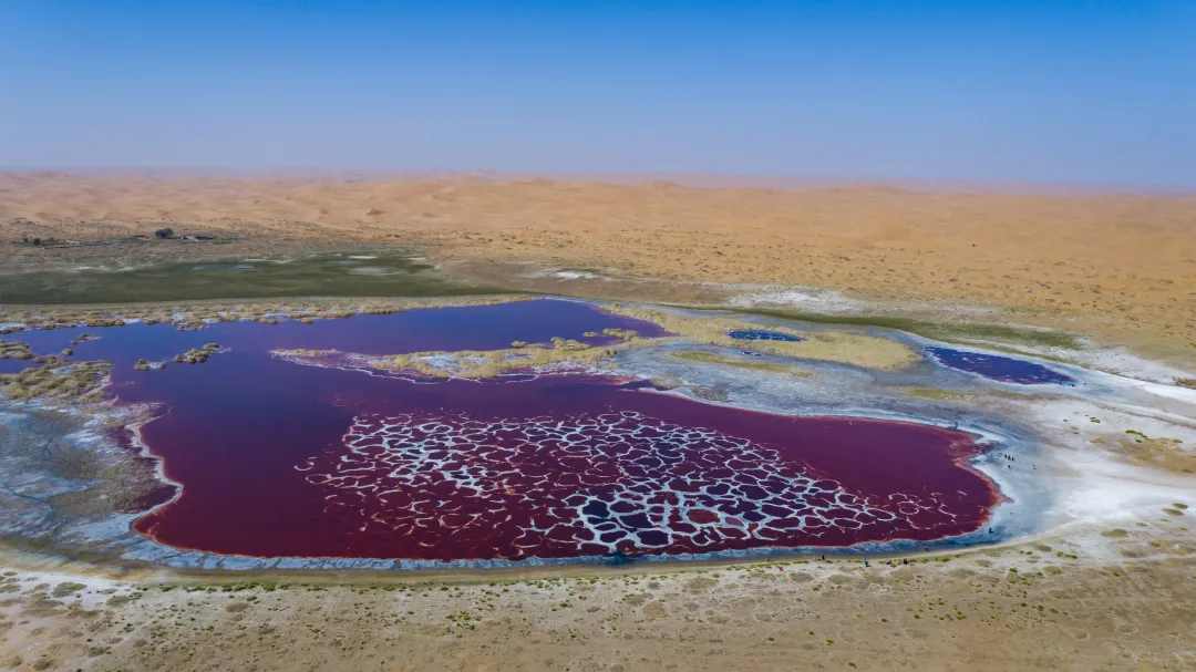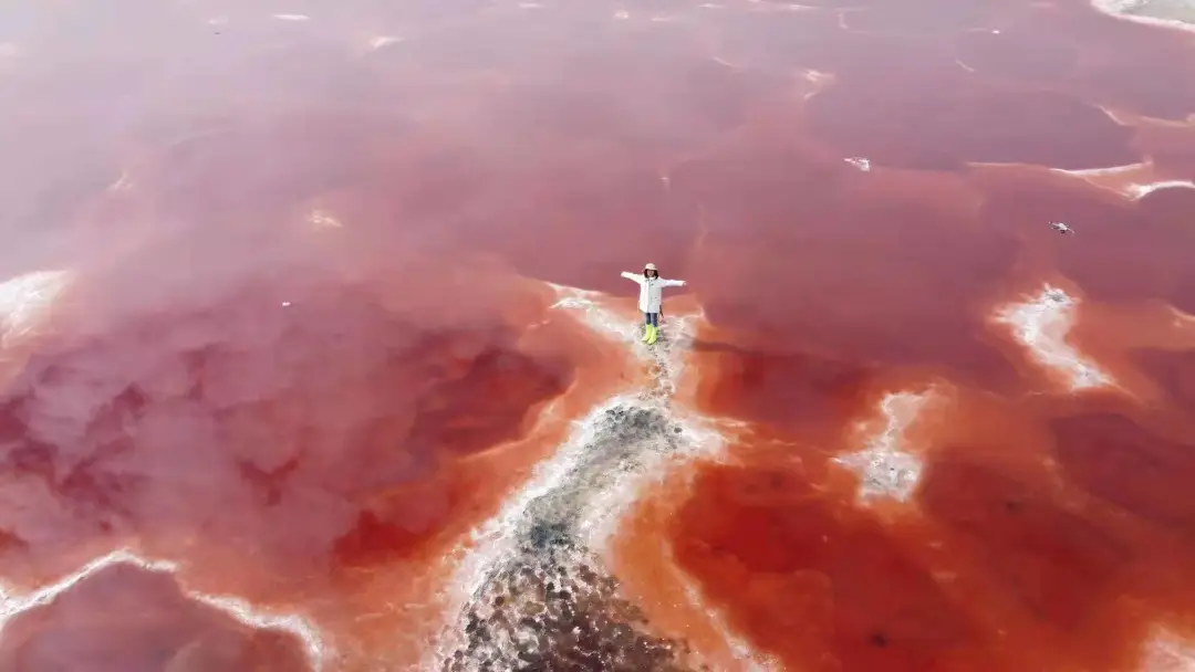 今日途径2021年度西北地区最火爆网红打卡点【地球心脏-乌兰湖】,从高空航拍仿佛就是地球的心脏一样,蓝天白云、黄沙漫漫、红色湖泊,随手拍都能是大片。