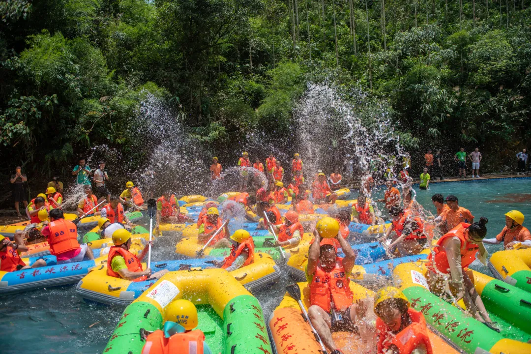 (免费升级全程漂)(全程约一个半小时)全长5.2公里,落差达236米,共137处,创下了广东单项漂流长度最长、回旋最多、落差最大三项纪录,被誉为中国漂流的巅峰之作。