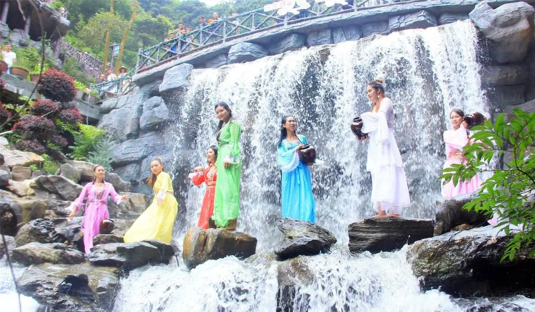 “晴窗终日雨,四季一帘珠”。古龙九瀑还专门打造了水帘洞景观,水帘洞面积近百米,洞内雨意纷纷,洞外水花飞溅,是古龙九瀑的打卡胜地。