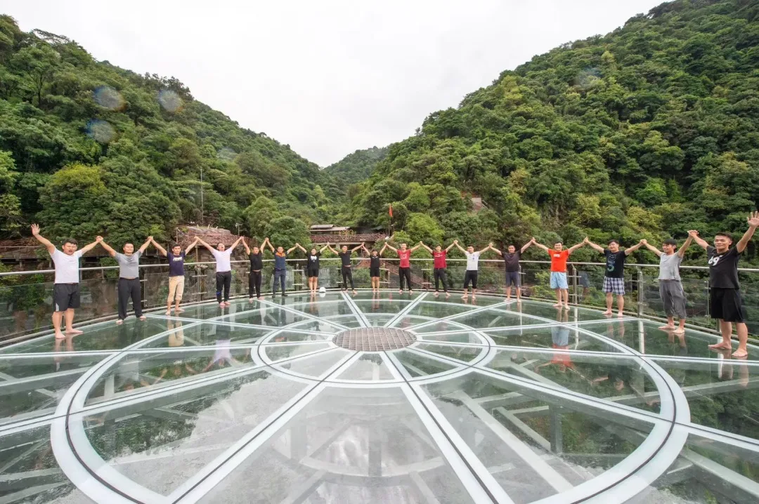 玻璃桥全长329米,平均宽度3.8米,最宽处6.8米(张家界玻璃桥宽度6米)。桥上2个港湾式透明观景台就位于最宽处。